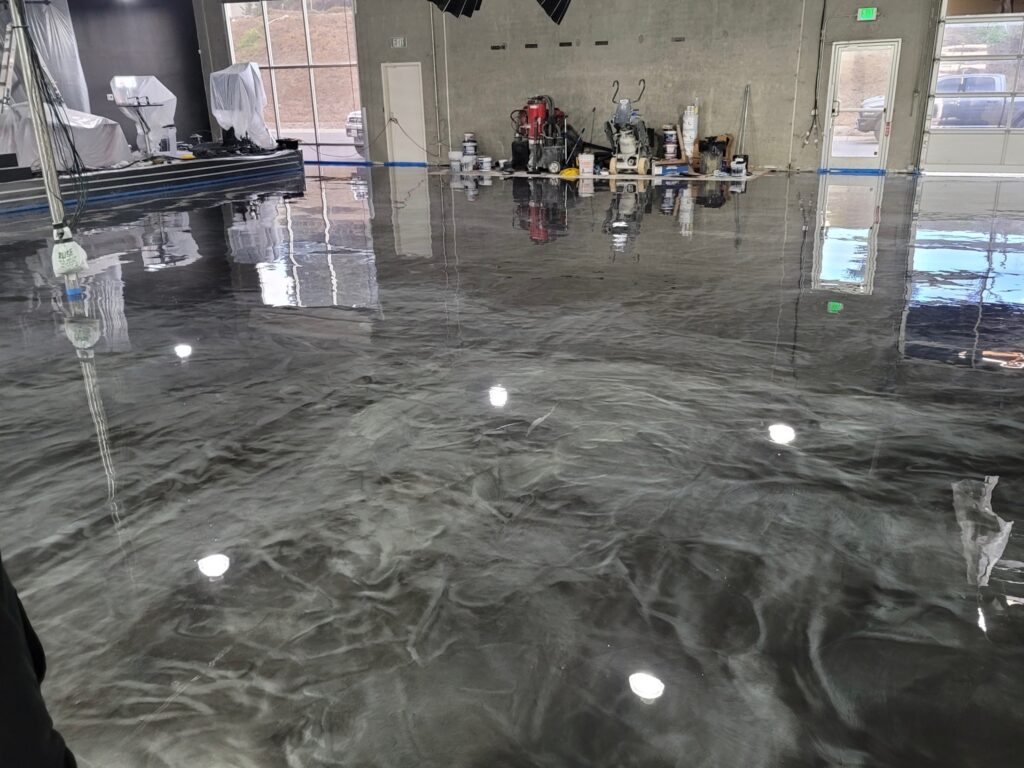 Metallic epoxy flooring is a premium floor coating that combines durability with striking visual effects. By blending metallic pigments into epoxy, this flooring creates a unique, three-dimensional appearance that can mimic the look of flowing lava, shimmering water, or polished marble. Perfect for both residential and commercial spaces, metallic floors are seamless, long-lasting, and resistant to stains, scratches, and chemicals. They’re an excellent choice if you want a modern, eye-catching finish that’s just as tough as it is beautiful.